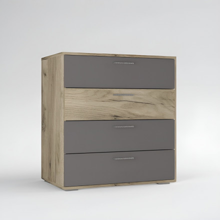 Низкая цена на популярный товар «Комод 4 выдвижных ящика в Спальню, Детский, в Гостиную, в Прихожую, ЛОФТ loft wood studio, для одежды, в комнату К-43 ЛАЙТ ЛДСП дуб крафт серый / графит» на сайте мебели m-m-mebel.ru