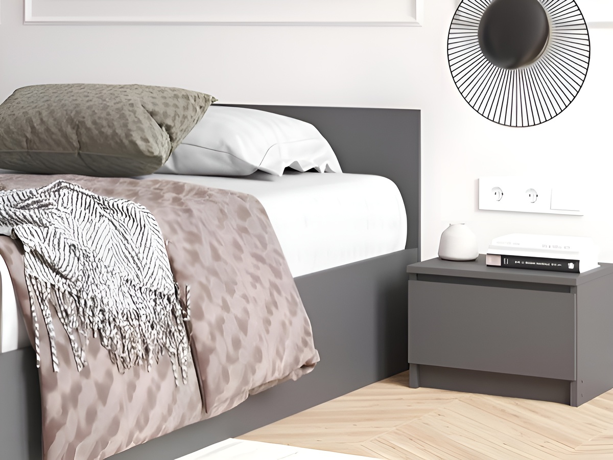 Низкая цена на популярный товар «Прикроватная тумба для спальни с ящиком | Тумбочка в спальню ТПМ 400.1 (МП) графит мори» в фирменном салоне-магазине «Моя Мебель»