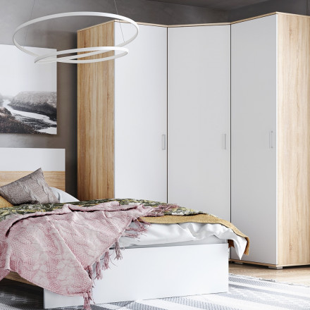 Низкая цена на популярный товар «Угловой шкаф для одежды в Спальню, в Прихожую с полками в Комнату, в Гостиную - Распашной, ШУ ЛАЙТ ЛДСП белый / сонома» на официальной онлайн витрине m-m-mebel.ru